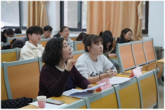 面试结束后,评委老师为每位参赛者都做了细致的点评,并为同学们演示了课程实例。马艳玲老师在讲评时表示文学院历年每一位试讲的同学让她深刻体会到“后浪”之强大,甚至许多人现在已经成为教师队伍的“中坚力量”。同时,她从课程整体架构、课件书写字体、师生互动等方面对参赛者提出了建议与指导。评委老师们在演示课程实例时都强调要遵循“教师主导、学生主体、训练主线”的原则。参赛者和现场同学在与评委老师的交流中连连感叹自己学有所获、受益匪浅,明白了只有充分体现学生的主体性,调动起其积极性,才能提升教育质量与课程水准。