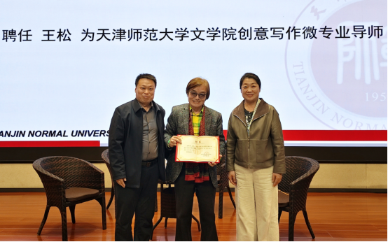 活动中,王松分别向天津师范大学文学院、数学科学学院赠送《橘红》新书。文学院特聘王松为创意写作微专业导师,文学院党委书记李静现场为王松颁发聘书。王松表示愿以此次受聘为契机,为母校发展贡献自身力量。他将积极联动文学界、出版界的专业力量,为学院引入优质创作与交流平台;同时,会依托自身创作经验,为学弟学妹们提供实践指导与资源对接,助力母校文学人才培养与专业建设,让跨界融合的成果真正惠及校园。